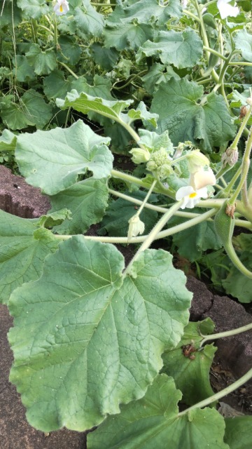 ツノゴマ(角胡麻)とは、食用植物あるいは園芸植物の一種である。 画像出典:東京都薬用植物園にて筆者撮影 科名:ツノゴマ科ツノゴマ属 学名:Proboscidea louisianica 原産地:北米 生態:一年草 北米地域の砂漠地帯が原産の一年草草本植物で、わが国への正式な渡来時期は不明であるが、各地の植物園にて栽培されるほか、熟した果実の乾燥品の形状が面白いので観賞用に販売される。 草丈は50㎝程で、横に広がる習性がある。葉はウリ科の植物を思わせるような円形状心形で、粘液質の毛に被われる。花は夏に咲き、唇を思わせるような形状で、先端が5つに分かれる。花弁は白色もしくはクリーム色になり、のどの部分に黄橙色の模様に見えるものがあるが、これは蜜標である。 果実は蒴果で、先端が鋭くとがった勾玉を思わせるような形状である。若い果実はピクルスにされて食用になる。熟した果実は下から裂け、ゴマのような種子をばらまく。種子をばらまき終わった後の果実の莢は先端が鋭い湾曲した2本の棘を持ち、これが地面に落ちているところを偶然通りかかった者がうっかりこれを踏んでしまい、激痛に悶絶することから「旅人泣かせ」「悪魔の爪」と呼ばれる。