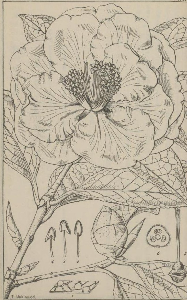 トウツバキ(唐椿)とは、樹木の一種である。 画像出典:牧野富太郎 著『牧野植物学全集』第1巻 (日本植物図説集),誠文堂,昭和9. 国立国会図書館デジタルコレクション https://dl.ndl.go.jp/pid/1236273 (参照 2024-10-08) 『新撰日本植物図説』第一巻より抜粋 科名:ツバキ科ツバキ属 学名:Camelia reticulata 原産地:中国 生態:常緑高木 中国が原産の常緑高木で、樹高は10mから15mになる。 樹皮は灰色がかった褐色で、表面はすべすべしており、毛はない。葉は先端のとがる楕円形で、長さは6㎝から14㎝になり、幅は3㎝から6㎝程である。厚みがあり、表面は革質で硬く、つやがある。縁には先端の丸くなる鋸歯がある。 3月から4月にかけて枝先の葉腋から束生し、1個から3個の花を咲かせる。我が国在来のツバキより花が大きく、一重咲きないしは八重咲きである。花色は紅色ないしは純白、斑入りなど様々な品種があり、花の直径は7㎝から18㎝である。現在流通するツバキの樹種は本種の正室を引き継いだものであることが多い。 原産地の中国では「唐」の時代から観賞用にされてきたという。それゆえ「唐椿」の名がある。また、稀に花やつぼみを摘んで花びらをほぐし、てんぷらや酢の物にする。