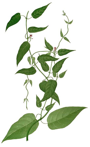 ヘクソカズラ(屁糞葛、学名: Paederia scandens)は、アカネ科ヘクソカズラ属の蔓(つる)性多年草で、やぶや道端など至る所に生える雑草。夏に中心部が赤紅色の白い小花を咲かせる。葉や茎など全草を傷つけると、悪臭を放つことから屁屎葛(ヘクソカズラ)の名がある。別名で、ヤイトバナ、サオトメバナともよばれる。 画像出典:https://commons.wikimedia.org/wiki/File:Paederia_foetida_Blanco1.54-cropped.jpg?uselang=ja