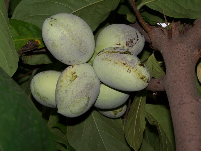 ポポーとは、熱帯果樹の一種である。 画像出典:https://commons.wikimedia.org/wiki/File:Asimina.jpg 科名:バンレイシ科アシミナ属 学名:Asimina triloba 原産地:北米 生態:落葉小高木 アメリカ中南部から北東部原産の落葉小高木で、わが国には明治末期に渡来し、現在は庭木として栽培される。樹高は10mほどになり、葉は互生するか螺旋形につき、全縁で倒卵形状披針形、長さは25㎝~30㎝になる。 早春に新芽が出る前に緑色ないしは紫色の花を咲かせ、秋に長さ10㎝~15㎝の細長い楕円形の緑色の果実をつける。これを追熟させ、数日して芳香が出たころに生食あるいはアイスクリームにして食す。果肉は柔らかく、「森のカスタードクリーム」と呼ばれるようにクリーム状で大変に味が良い。また、柿を思わせるような風味と果実の見た目がアケビに似ていることから「アケビガキ」の和名で呼ばれることもある。 熟すと柔らかくなって痛みやすく、輸送が難しいため、あまり市場に並ぶことはない。果実を食したい場合はインターネット通販で取り寄せるか、熱帯果樹の中でもわが国の冬の低温に耐えきれるほど耐寒性が強く、栽培が容易なので、苗木を買って育てる。