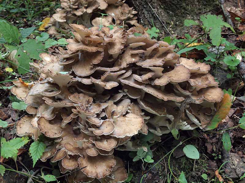 マイタケ(舞茸)とは、食用きのこの一種である。 画像出典:https://fungi.sakura.ne.jp/index/fr_ajiwai_kinoko.htm 「キノコのフォトアルバム」の「マイタケ」のページから。 科名:トンビマイタケ科トンビマイタケ属 学名:Grifolas frondosa 原産地:北半球・南半球一部 生態:担子菌類 我が国の各地を含めた北半球、およびオーストラリアに分布するきのこである。秋にミズナラやコナラなどの広葉樹の枯れ木の根元に生え、材の白色腐れを引き起こす。 きのこは無数に分岐した柄の先端に扁平なへら型や扇形の直径3㎝から10㎝程の無数のカサをつけ、全体的な大きさは直径30㎝ほどになる。カサの表面は黒みを帯びた褐色で、放射状のしわと細かい毛のような菌糸におおわれ、縁が若干波打っている。内部は白い。カサの裏は管孔になり、胞子紋は白い。 加熱してもしっかりとした歯ごたえを持っていて、炒め物・鍋料理(特に秋田県の郷土料理であるきりたんぽ鍋には欠かせない具材である)・汁物・天ぷら・煮物・佃煮・炊き込みご飯・パスタ・ピラフに向く。 かつては商品価値が高いものの、南関東の照葉樹林地帯以南の地域ではそれほど一般的な食用きのこではなく、お世辞にも知名度が高いとは言えなかったため、山に精通したプロのきのこ採りでなければ見つけるのは難しいといわれていた。1970年代に人工栽培の実用化に成功してからはわが国全土の市場で通年出回るきのことなっている。 和名の「マイタケ」の由来は諸説あり、「思わず踊り出してしまうほど味がいいということから」という説と、「野生のものを山で発見すると舞い踊りたくなるほど嬉しい気持ちになるきのこであることから」という説が有名である。平安時代の説話集である『今昔物語集』には、「複数の尼さんたちがきのこを食べて狂ったように踊っている様子から『舞茸』という名前がこのきのこにつけられた」といわれるが、現在はこのきのこは本種ではなく、ヒメノガステル科のオオワライタケやオキナタケ科のワライタケではないかとされる。両者ともに毒きのこであり、前者は一見すると食用キノコを思わせる黄色味の強い褐色という色合いだが、強い苦みを持ち、誤食すると嘔吐や幻覚を引き起こす。後者は貧弱な風体で、全体的に白っぽい。こちらは麻薬及び向精神薬取締法において麻薬原料植物として指定されているので、興味本位で採取したり所持したりしてはならない。