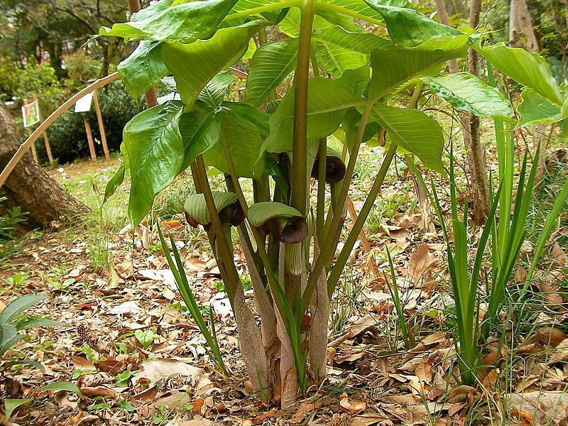 ムサシアブミとは、山野草の一種である。 画像出典:https://commons.wikimedia.org/wiki/File:%E3%83%A0%E3%82%B5%E3%82%B7%E3%82%A2%E3%83%96%E3%83%9F(%E6%AD%A6%E8%94%B5%E9%90%99)(Arisaema_ringens_(Thunb.)_Schott)-%E8%8A%B1_(5846532863).jpg?uselang=ja 科名:サトイモ科テンナンショウ属 学名:Arisaema ringens 原産地:日本 生態:多年草 別名:ヘビノダイハチ 我が国の関東以西、四国、九州、沖縄に分布する。ふつう海岸に近い湿潤な林に自生するが、山野草として栽培されることもある。 葉は3出複葉で、小葉は卵形である。3月から5月に花茎をのばし、黒紫色から深緑色の仏炎苞に包まれた黄色い棒状の花を咲かせる。 サトイモに似た塊茎をつけるが、本種を含めたテンナンショウの類は塊茎や茎、葉など全草にシュウ酸という毒成分がある。食すとシュウ酸の結晶が口に刺さってビリビリと腫れるため、絶対に食してはならない。 漢方では塊茎を「天南星」と呼んで薬用にするが、医師の判断のもと用いなければならない。 和名は、仏炎苞の形が武蔵国(現在の東京都の一部・埼玉県・神奈川県横浜市、川崎市)で生産された馬具の鐙(あぶみ)に似ているため。