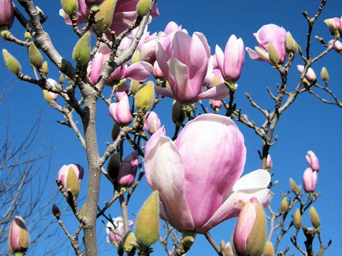 モクレンの園芸変種ともいうべき品種で、全体的にモクレンより小さいので「ヒメモクレン」の別名がある。株立ちとなり、枝は細くなる。