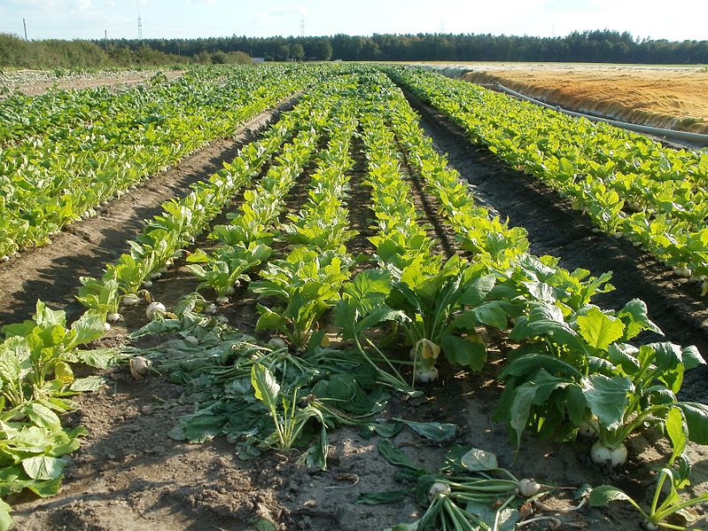 ルタバガとは、野菜の一種である。 画像出典:(上)https://commons.wikimedia.org/wiki/File:20110830Ruebenfeld_Reilingen4.jpg (下)https://commons.wikimedia.org/wiki/File:Rutabaga_(16422869763).jpg 科名:アブラナ科アブラナ属 学名:Brassica napobrassica 原産地:西部アジア 生態:2年草 別名:スウェーデンカブ、オオカブ 西部アジア原産の2年草で、わが国には江戸末期~明治末期に渡来している。わが国での利用は飼料用がほとんどであったが、山形県で栽培される「矢越かぶ」という野菜は本種が煮物用として栽培されたものである。戦後になって栽培が途絶えたが、近年種子が再発見され、栽培が復活した。 葉や茎はキャベツに近く、根はカブ状に肥大し、葉に近い部分が緑色ないしは赤紫色に色づく。根の内部は切ると黄色ないしは白色である。 欧米では飼料用としても利用されるが、どちらかというと野菜としての利用法が多い。ポタージュスープやゆでてつぶしたものを肉料理の付け合わせにする。