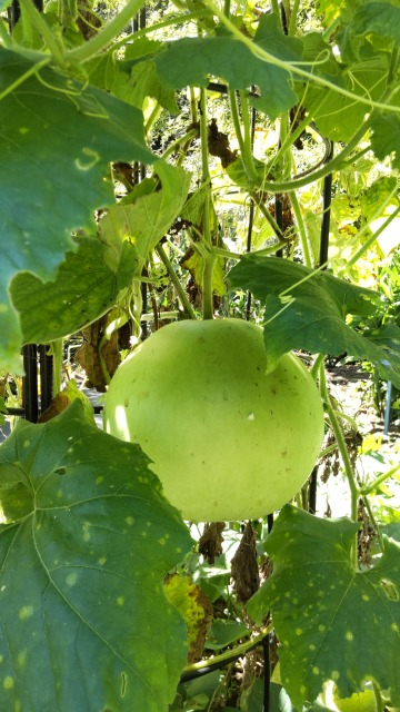 マルユウガオの果実、東京薬科大学薬用植物園にて筆者撮影。