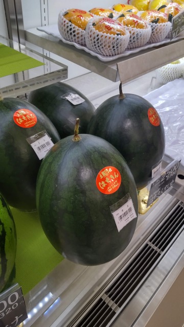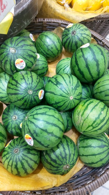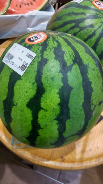 スイカは、果実を食用とする植物の一種。 画像出典:(左1)スイカの花と蔓。自宅近くの園芸店にて筆者撮影。(右1)深緑色の果皮のスイカ。自宅近くの畑にて撮影。(左2)オーソドックスなタイプの「緑地に黒っぽい緑色のストライプ」の大玉スイカ。国分寺市の商業施設にて筆者撮影。(右2)小玉スイカ。「スウィートキッズ」という品種で、果実の大きさがハンドボールより一回り小さいくらいの大きさとなる品種である。立川市の商業施設にて筆者撮影。(左3)「黒美人」(ブランド名は「はちきん」)という品種のスイカ。楕円形に黒に近い緑色の表皮である。所沢市の百貨店にて筆者撮影。姉妹品種として、果皮が黄色の「金美人」もある。(右3)欧米諸国で多く栽培されるタイプのスイカ。鮮やかな緑色地に黄緑色の縞模様が入るものである。池袋の商業施設にて筆者撮影。