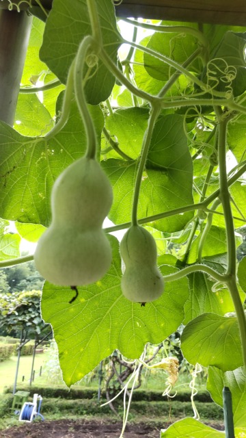 ヒョウタンとは、有用植物の一種。熟した果実を容器や楽器などに加工して利用する。漢字表記は「瓢箪」「葫蘆」。 画像出典:上写真4枚は花、果実共に神代植物公園にて撮影。(左1)花。(右1)センナリヒョウタン(千成瓢箪)。(左2)ジュウナリヒョウタン(十成瓢箪)。(右2)鶴首(推定)。した2枚は大船フラワーセンターにて撮影。(左3)はオオヒョウタン(大瓢箪)。(右3)は品種名不詳。