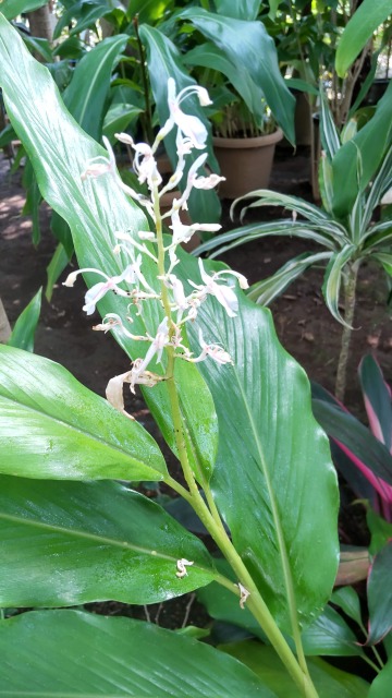 アオノクマタケラン(青野熊竹蘭、学名:Alpinia intermedia Gagnep.)は、ショウガ科ハナミョウガ属に分類される常緑の多年草の1種。 画像出典:東京都薬用植物園にて撮影 和名は、タケクマランに似ていて全体に赤みがないことに由来する。シノニムは、Alpinia oblongifolia Hayata。英名は、hardy wild ginger。中国名は、光葉山姜。本来カキツバタに比定される「杜若」はカキツバタではなく、アオノクマタケランであると、牧野富太郎は著書「槙野日本植物図鑑」で述べている。