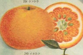 イヨカンとは、果樹の一種である。 画像出典:村越三千男著『内外植物原色大図鑑』(国立国会図書館所蔵)より抜粋 科名:ミカン科ミカン属 学名:Citrys Iyo Group 原産地:日本 生態:常緑低木 わが国在来の柑橘類で、山口県で作出された品種である。現在は愛媛県で栽培されることが多い。 長らくウンシュウミカンとザボンの交雑種であると考えられてきたが、柑橘類のゲノム解析が技術的に可能になったことで、カイコウカン(海紅柑、後述)とオオベニミカンの交雑種であることが明らかになっている。 果肉は果汁を多く含み、甘酸っぱく味も良い。果皮はやや厚みがあるものの、手で剥くことができる。 1885(明治18)年に山口県阿武郡東分村で発見され、その3年後に愛媛県温泉郡持田村愛で栽培を開始した。それゆえ、「伊予ミカン」の名称で呼ばれた。ただ、この名称は当時になって栽培が広まったウンシュウミカンとしばしば混同されやすく、「イヨカン」と名称を変えることで落ち着いたという。戦後になって作出された「宮内イヨカン」はおいしさはそのままに果皮が剥きやすくなっているので、人気を博したという。