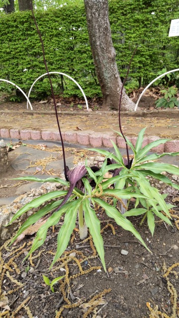 ウラシマソウ(浦島草)とは、野草の一種である。 画像出典:東京都薬用植物園にて筆者撮影 科名:サトイモ科テンナンショウ属 学名:Arisaema thunbergii ssp. urashima 原産地:日本 生態:多年草 北海道南部から本州、四国・九州、それに台湾に分布する多年草である。山地の湿った林内に生えるほか、観賞用にするために庭に栽培することがある。 草丈は30㎝から50cmほどで、葉は掌状複葉である。11個から17個の小葉からなり、それぞれの先端が尖る。 春に花茎を伸ばして黒紫色の仏炎苞に包まれた花を咲かせる。ほかのテンナンショウ類と明確に異なるのは、仏炎苞の付属物が長く伸びている点である。これを、浦島太郎の釣り糸に例えて「ウラシマソウ」と呼んだ。 花の後にはトウモロコシに似た集合果をつけ、一見するとおいしそうに見えるが、テンナンショウ類のお約束で、果実を含めた植物体全体にシュウ酸を含むので食用にしてはならない。しかも、果実には甘みがあるためにそのまま食してしまい、中毒事故を起こした例が知られている。 とはいえ、サトイモ科の園芸植物を扱う場合はゴム手袋を着用したり、不用意に口に入れたりしなければ中毒することはない。