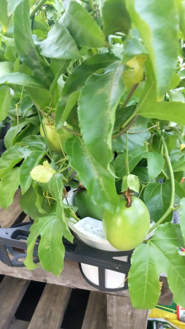 クダモノトケイソウとは、熱帯果樹の一種である。現在は「パッションフルーツ」の名称の方がよく知られている。 画像出典:(上)東京都薬用植物園にて筆者撮影/(下)自宅近くの園芸店にて撮影 科名:トケイソウ科トケイソウ属 学名:Passiflora edulis 原産地:ブラジル 生態:常緑小低木 ブラジルが原産のつる性常緑小低木で、わが国には明治時代の中ごろに渡来し、現在は沖縄県や鹿児島県などで栽培されている。 葉は腎型で、茎に互生する。白色または薄紫色の花を咲かせ、花弁と萼片が5個ずつ交互に並ぶ。またひげ状の副花冠が長く垂れ下がる。花の後に楕円形の艶がある果実を実らせ、緑色から赤紫色ないしは黄色に熟す。表面に若干しわが寄ったころが食べごろであるとされる。 果肉には甘酸っぱい風味と芳香があり、生食やジュース、ゼリーの材料にされる。わが国では露地栽培できる熱帯果樹の一種であり、栽培が簡単なので、家庭果樹としても人気である。