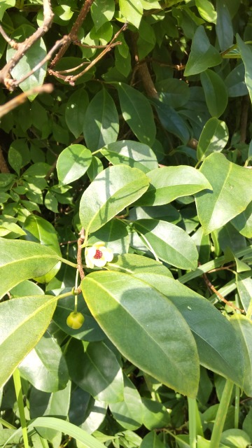 画像出典:花と果実のいずれも自宅近くにて筆者撮影 科名:マツブサ科サネカズラ属 学名:Kadsura japonica 原産地:日本、中国、台湾 生態:常緑蔓性低木 本州から四国、九州や中国南部、台湾の山野の林に自生する蔓性常緑低木である。樹皮はゴツゴツした灰褐色になり、太さは2㎝である。樹皮や若い茎はやや粘性がある。葉は卵型で互生し、縁が波打ったようになる。雌雄異株で、花期は夏。7月から8月にかけて薄い黄色の花を下に垂れ下がるように咲かせる。秋から冬にかけて花托が膨らみ、キイチゴに似た集合果を垂れさがるように実らせ、果実は緑色から赤色に熟す。果実が取りについばまれると、後には花托が残るのみとなる。 果実はおいしそうに見えるが、味がしないので食用にはせず、酒に漬けて果実酒にするほか、茎や葉から得られる粘液は美男葛(びなんかずら)、赤く熟した果実を乾燥したものは南五味子(なんごみし)*1と称して漢方薬にする。果実には咳止めや滋養強壮に聞くとされ、同じ科で果実の色は赤色だが、形状が長いコショウの房に似た形状になるチョウセンゴミシの代用に用いられた。