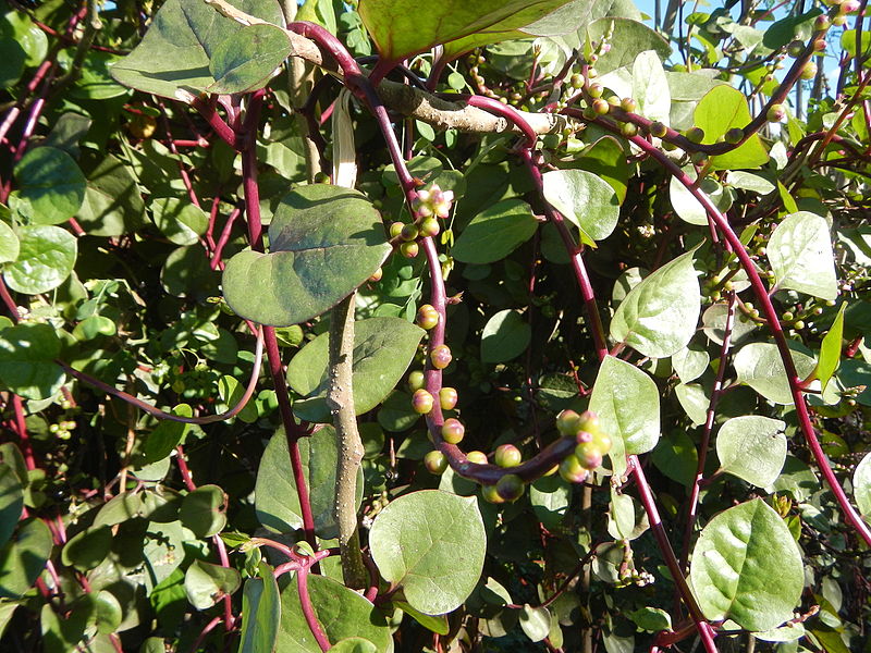 ツルムラサキとは、野菜の一種である。 画像出典:池袋の百貨店にて筆者撮影。 画像出典:https://commons.wikimedia.org/wiki/File:0841jfLandscapes_Welcome_Roads_Binagbag_Angat_Bulacanfvf_11.JPG?uselang=ja いわゆる「シンツルムラサキ」。 著作者:Judgefloro(Public domain) 科名:ツルムラサキ科ツルムラサキ属 学名:Basella rubra 原産地:熱帯アジア 科名:つる性一年草 熱帯アジアが原産のつる性一年草で、観賞用または食用に栽培される一年草だが、現在は沖縄県や鹿児島県で栽培品が逸脱し、野生化しているという。 茎の長さは2m以上になり、肉質で毛はない。茎の色が紫色になるものと緑色のものがあり、牧野富太郎は「緑色のものは江戸時代、紫色のものは明治時代になって渡来した」と説明し、紫色のものに「シンツルムラサキ」(新蔓紫)と命名しているのだが、岩崎常正著『本草図譜』にはすでに蔓が紫色のものが記載されている。夏から秋に白色ないしは赤色の花を咲かせ、秋に球形の偽果をつける。 和名は、この偽果の含まれる紫色の果汁で染め物をしたことから。野菜としての利用が主流になったのは戦後のことで、現在は蔓の先を収穫し、おひたしや炒め物にして食することが多い。本種の属する科は野菜として栽培されるのが本種とオカワカメ?(アカザカズラ)しかないことから、連作障害が発生せず、蔓もの野菜の中では育てやすい部類である。