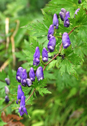 トリカブトとは、キンポウゲ科トリカブト属の多年草の総称である。 画像出典:https://www.ootk.net/cgi/shikihtml/shiki_2172.htm ハナトリカブト(A.chinense)の画像。「四季の山野草」より抜粋 画像出典:https://www.ootk.net/cgi/shikihtml/shiki_2973.htm ホソバトリカブト(A.senance)。「四季の山野草」より抜粋 画像出典:https://www.ootk.net/cgi/shikihtml/shiki_177.htm ヤマトリカブト(A.japonicum)。「四季の山野草」より抜粋 画像出典:https://iiif.dl.itc.u-tokyo.ac.jp/repo/s/agriculture/document/7844f0c7-2434-7b74-15df-c74b0e3c8e38#?c=0&m=0&s=0&cv=22&xywh=1402%2C1959%2C3568%2C2128 ハナカズラ(A. ciliare DC.)の画像。東京大学所蔵「有用植物図説」より抜粋。 科名:キンポウゲ科キンポウゲ属 学名:Aconitum.sp 原産地:亜寒帯・温帯地域 生態:多年草 北半球のの温帯地域あるいは亜寒帯地域に広く分布する多年草で、世界中に300もの種類があり、わが国にはそのうち30種類ほどが知られているが、その中でも知名度が高いのは全国広い地域に自生するヤマトリカブト(A.japonicum)と、花の美しさから園芸の対象となるハナトリカブト(A.chinense)の2種である。また、普通は草丈1mから2mほどになる立性の草本だが、茎がつる状になるハナカズラ(A. ciliare DC.)という珍しい品種もある。 夏から秋に青紫色(まれに白色や薄いピンク色)の烏帽子型の花を咲かせ、それが雅楽の「鳥兜」に似ていることからこの名称があり、この花は古くから観賞用にもされた。 トリカブト類は薬草としても知られ、根茎を「附子(ブシ)*1」または「烏頭(ウズ)」と呼び、強心利尿薬に用いた。しかし、本種にはもう一つの恐るべき顔があった。そう。猛毒植物としての素顔である。主な毒成分はジテルペン系アルカロイドのアコニチンで、他にメサコニチン、アコニン、ヒバコニチン、低毒性成分のアチシンの他ソンゴリン等を全草、特に根に含む。 特に、アコニチンは強毒であるため、素人は無論のこと、薬草の扱いに長けた人ですら薬としてむやみに服用すれば嘔吐、呼吸困難、臓器不全、痙攣を経て心停止に陥り、命を落とす。明治期から大正期の本草学者・白井光太郎が事故死したのは、この附子(ブシ)が原因である。白井は、この猛毒植物から作り出した薬が、人体にどれほどの薬効を与えるのかという実験を、自らの体を使って行っていたのだ。そうして、薬効のある量より微妙に多い量を摂取しただけでこの世を去ってしまったのだった。本種の毒素は日本犯罪史上、五本の指に入る凶悪さを誇る「トリカブト保険金殺人事件」(1986年)にも用いられた。しかし、当時はアコニチンによる殺害とはすぐには断定されなかった。というのも、犯人が早期に足がつくことを危惧してフグに含まれる猛毒成分・テトロドトキシンと混ぜて死亡時間にずれ(・・)を生じさせ、死因の特定を困難にさせたためであった。経口だけでなく、傷口に入ったときもまた同様に危険である。世界の各地の部族は本種の毒を矢に塗り、戦闘に用いた。江戸時代初期、シャムの日本人町の支配者・山田長政が傷口に毒を塗られて殺される際に使われたのも、トリカブトの毒であるとされる。 また、本種の葉は切れ込みがあって、しばしば山菜のニリンソウ*2やヨモギ、薬草のゲンノショウコと誤って食してしまい、死亡した例が数件知られている。 近年はハナトリカブトが園芸植物として青紫色の花を観賞用にされることが多いが、手入れの際には必ずゴム手袋を着用し、またペットの手の届くところに鉢を置かないよう気を付けるべきである。
