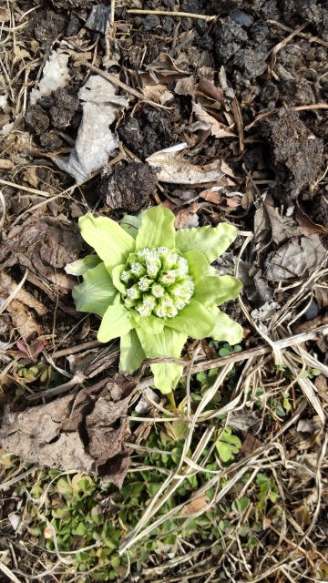 フキとは、野菜の一種である。 画像出典:(上)(中)いずれも東京都薬用植物園にて筆者撮影 フキの葉と「ふきのとう」/(下)https://botanic.jp/plants-ha/fuki.htm アキタブキ。 科名:キク科フキ属 学名:Petasites japonicus 原産地:日本 生態:多年草 我が国が原産の宿根草で、葉は根生し、葉の形状は円形で周囲にはまばらに鋸歯がある。直径は30㎝以上で、柄の長さは60㎝になり、表面には灰色を帯びた白色の毛が生えている。 細長い地下茎が地中にめぐらされており、そこから葉を出す。雌雄異株で、早春に大きなうろこ状の苞で包まれた花穂を出す。この花穂が「ふきのとう」と呼ばれる。 いつ頃栽培が始まったかは不明だが、平安中期(928年)に編纂された「延喜式」にはすでに記載されており、官人向けに栽培が始まったとされる。葉柄や「ふきのとう」は佃煮や天ぷらにして食用にする。よく加熱してアクをとらないと軽い腹痛や下痢などの症状を引き起こすことがある。 北海道や東北地方に自生し、秋田県で多く栽培されるアキタブキ(P.amplus)は葉が巨大で、大味ながらも長さ1.5mに及ぶ葉柄を砂糖煮にして食用にする。