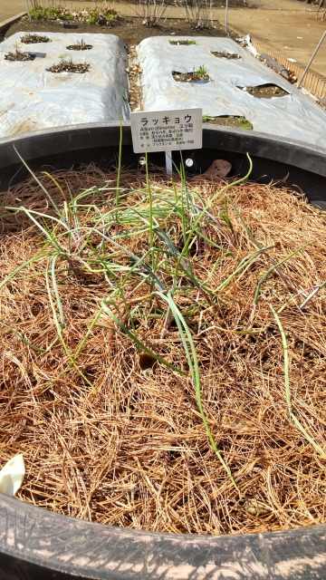 ラッキョウ(辣韭)とは、香味野菜の一種である。 画像出典:東京都薬用植物園にて撮影 科名:ヒガンバナ科ネギ属 学名:Allium chinense 原産地:中国南東部? 生態:多年草 中国南東部が原産と見られる多年草で、わが国には遅くとも奈良時代から平安時代に渡来しており、『新撰字鑑』(892年)に「ナメミラ」とあるのが最初の記録である。わが国最初の百科事典の『本草和名』(918年)や『和名類聚抄』(10世紀出版。詳細な年代は諸説あり)では「オホミラ」とある。現在は我が国を含めた東アジア地域で多く栽培される。 鱗茎は長卵形で、しばしば分けつする。栽培する際には、この分けつした球根を植え付ける。葉は細い円柱形で、長さは30㎝ほどになり、根元から束生する。10月に新しい葉と共に30㎝~60㎝の花茎を出し、淡い赤紫色の小さな星型の花を咲かせる。 利用する部分は主に鱗茎で、鱗茎には独特の臭気と辛味があり、甘酢漬けや塩漬けなど漬物にして食することが多く、しばしばカレーの添え物にする。軟白栽培したものは「エシャレット」の名称で呼ばれるが、欧米で栽培されるタマネギに似た香味野菜のエシャロット(ベルギー・エシャロット)とは異なる。
