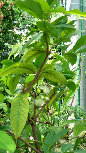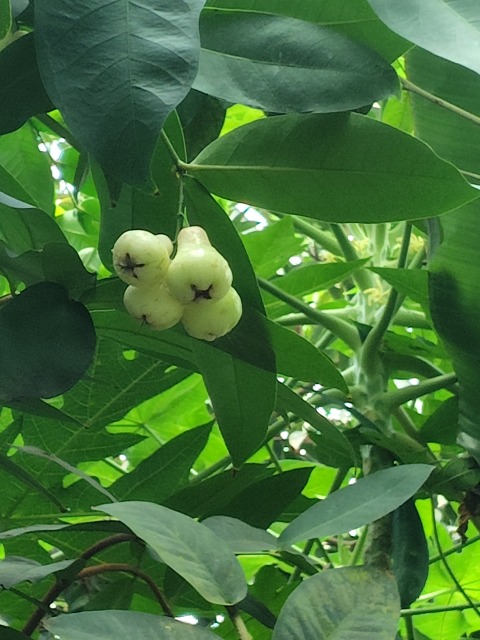 レンブとは、果樹の一種である。 画像出典:1枚目の花の写真、2枚目の果実のいずれも東京都薬用植物園にて筆者撮影。3枚目は新宿御苑にて筆者撮影 科名:フトモモ科フトモモ属 学名:Syzygium samarangense 原産地:東南アジア 生態:常緑高木 マレー半島の原産で、我邦への渡来時期は未詳であるが、各地の植物園の温室で栽培される。また、広くジャワから台湾、ハワイなどで栽培される。 常緑高木で、樹高は10m~13mになる。春に白い独特な形状の花を咲かせ、雄蕊は放射状となり、ネムノキを思わせるような形状である。夏季に果実をつけ、果実の形状は釣鐘状で、表面は漆を塗ったように艶がある。果実の色は白色または上に掲載した写真のように薄紅色である。果肉は白色で、果汁は少なく海面質である。しばしば生食され、風味は「ナシとリンゴを一緒に食べたようである」と評される。