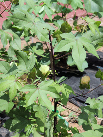 原産地のインドや熱帯地域では多年草となるが、耐寒性がないので、わが国では一年草の扱いとなる。夏の盛りから秋にかけて、葉腋に柄のある淡い黄色の花を咲かせる。