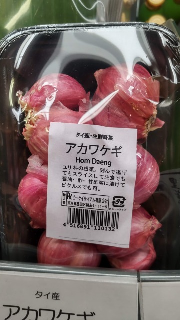 画像出典:(左)東京都薬用植物園にて筆者撮影/(右)池袋の百貨店にて筆者撮影 科名:ヒガンバナ科ネギ属 学名:Allium cepa L. var. aggregatum 原産地:ヨーロッパ 生態:多年草 欧州産のネギの一品種で、タマネギの変種ともいうべき香味野菜である。わが国には明治初期に渡来しているが、特有のにおいがあり、和食への応用が難しいためか、あまり普及していない。 草姿はワケギに似ていて、茎は根元で束生し、長さは30㎝である。葉は細く多数あり、円柱形で先端は尖る。麟茎はタマネギとニンニクを合わせたような味わいで、フランスやイタリアの料理に欠かせない。中華料理や台湾料理では、鱗茎を刻んでカリカリになるまで揚げたフライドオニオンのようなものを麺料理の薬味にする。 わが国で同名の名称で出回るのは生食用に軟化栽培したラッキョウで、本種との混同が起きやすいので、現在は「エシャレット」名義で出回ることが増えている。本種を市場で取り扱う場合は「ベルギー・エシャロット」名義であることが多い。 また、タイで栽培されるものは「ホムデン(หอมแดง)」と呼ばれ、そちらはわが国では「アカワケギ」の名称でも知られている。西洋で栽培されるものとは異なり、ごく小さな球形の玉ねぎを思わせるような形状となる。刻んで生のままサラダや薬味とするほか、スープの下味や炒め物の具材に使う。 画像出典:新宿伊勢丹にて筆者撮影