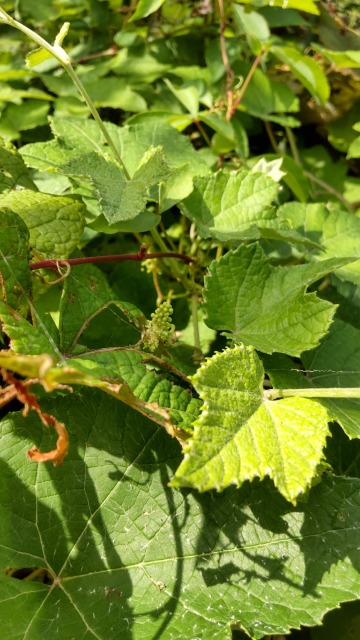 エビヅルとは、野生する樹木の一種である。 画像出典:小石川植物園にて筆者撮影。 科名:ブドウ科ブドウ属 学名:Vitis ficifolia 原産地:東アジア 生態:落葉ツル性木本 日本の本州や四国・九州に分布するほか、中国や朝鮮半島に分布する落葉のつる性樹木である。丘陵から山地の林縁などに生え、しばしば他物に絡みついて成長する。 葉は卵型寄りの三角形で、3~5つに裂け、互生する。初夏から夏にかけて葉と対生して円錐花序を出して花を咲かせ、花の色は黄緑色である。 秋に黒みの強い紫色の液果を房状につける。この果実は甘酸っぱいので食用になるほか、ジュースや果実酒を作ることができる。ただし、特有の松脂のようなにおいがあるため、近縁種のヤマブドウの方が好まれている。