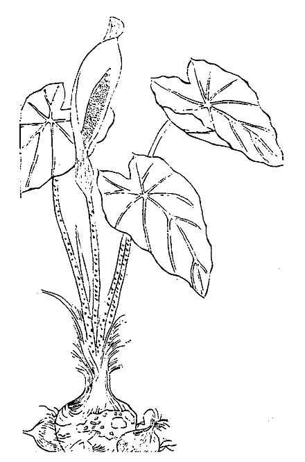 サトイモは、食用にされる植物の一種である。芋(地下茎)や葉柄(ずいき、芋がら)を食用にする。 植物名實圖考 (道光刻本)/第四卷/芋