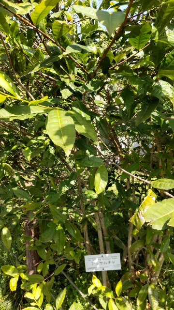 チャノキは、有用植物の一種である。 画像出典:東京都薬用植物園にて筆者撮影 科名:ツバキ科ツバキ属 学名:Camelia sinensis var.sinensis 原産地:中国 生態:常緑小高木 別名:めざましくさ 中国に分布し、時に野生化する常緑小高木である。平安初期(805年)に最澄(天台宗開祖)が中国(唐)から薬用の目的で持ち帰り、鎌倉初期(1191年)には臨済宗の僧侶・栄西が種子を中国(南宋)から持ち帰り、栽培を開始して一気に広まった。室町期から桃山期には村田寿光や千利休など著名な茶人が現れ、とくに織豊時代には信長や秀吉が利休から茶の湯についての手ほどきを受けており、大名の中にも利休に学ぶものが現れ、古田織部や織田有楽など『利休七哲』が世に知られる。 茶畑では低木状に栽植する。幹は束生し、長い年月を得たものほど幹色は白っぽくなる。葉は互生し、長さは4㎝~10㎝になる。秋に直径2㎝~3㎝の白い花を咲かせる。花弁は5枚から7枚で、下向きに垂れ下がる。冬に黒褐色の球形の蒴果を下向きにつけ、熟すと割れて種子をばらまく。 葉を乾燥させ、粉末にしたのち茶として飲用する。また、そば粉に練りこんで茶そばにする。