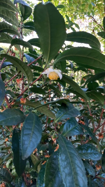 画像出典:牧野記念庭園にて撮影 中国南部や東南アジア地域に自生するチャの変種の一つ。わが国で一般的に利用されるチャよりも葉が大きくなり厚みが出る種で、中国では緑茶の材料に使われることから「唐茶」の名称があるのだが、本種の葉は苦みが強いので茶にしても質の良いお茶はできず、もっぱら観賞用である。名前が同じ「トウチャ」は「沱茶」と表記し、これは固有の植物名ではなく、プーアール茶などでおなじみの、ドーナツ形に固めた固形茶のことをいう。