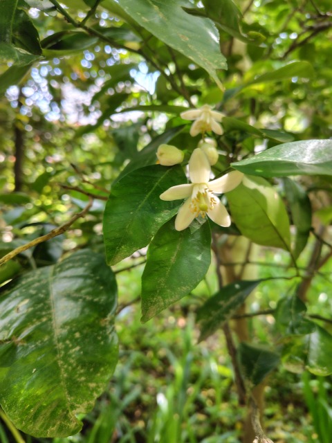 ナツミカンは、柑橘類の一種である。 画像出典:東京薬科大学薬用植物園にて撮影。 科名:ミカン科ミカン属 学名:Citrus natsudaidai 原産地:日本 生態:常緑小高木 別名:ナツダイダイ 山口県が原産で、江戸時代中期に、現在の山口県長門市仙崎大日比の海岸に漂着した果実の種子から育ったのが起源とされており、現在もなお樹齢300年近い古木が残っており、天然記念物として保護されている。比較的寒さにも強く、関東でも庭木として栽培される。 樹高は3m~6mに達し、楕円状披針形の葉には小さな翼があり、ミカン科特有の形状である。初夏に枝先の葉腋に白色の花を咲かせ、秋に偏球形の果実をつけ、緑色から橙黄色ないしは鮮やかな黄色に熟す。冬に熟したものは酸味が強くて生食には適さないので、翌年の4月から6月まで冷暗所に保存しておく。こうすると果実全体に甘みが回って生食やジュース、マーマレードにすることができる。 古くはナツダイダイと呼ばれ「夏橙」「夏代々」の表記で流通していたが、明治になって大阪方面に出荷する際、「代々」が訓読みで「よよ」と読むことができ、これが関西弁で中風を意味するため、縁起が悪いとして「夏蜜柑」と名称が変更されることとなった。 大正末期(1925年)に大分県で本種の枝変わりの品種で、本種より食用にできる時期が早くなる「甘夏」(植物学上の名称はカワノナツダイダイ)が発見され、1965年以降、山口県以外の地域でナツダイダイからカワノナツダイダイへの栽培の切り替えが進んでいる。現在、市場でナツミカンとして流通しているのはほとんどが甘夏、いわゆるカワノナツダイダイである。 画像出典:板橋区立赤塚植物園にて筆者撮影。ラベルには「ナツミカン」と記されていたが、枝に残っていた前年度の果実の形状や色合いからしておそらくカワノナツダイダイ(?)の花と思われる。 画像出典:カワノナツダイダイ(甘夏)の果実。自宅近くの植込みを撮影。