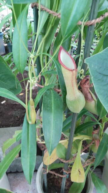 ウツボカズラとは、食虫植物の一種である。 画像出典:福岡市植物園にて筆者撮影。ムラサキウツボカズラ(学名をカタカナ語読みした「ネペンテス・マキシマ」の名称でも知られる)という品種である。栽培の難易度はやや高い。 画像出典:東京都薬用植物園にて筆者撮影。「ヒョウタンウツボカズラ」(N.alata)という品種で、補虫嚢の下部がやや丸く膨らみ、ヒョウタンのようになる品種である。園芸品種で最も多く出回る系統である。 画像出典:神代植物公園にて筆者撮影。「ネペンテス・ラジャ」という、インドネシアのボルネオにあるキナバル山の標高1500~2650mに見られる固有種。捕虫嚢の全体の大きさが40㎝とかなり巨大になる。 科名:ウツボカズラ科ウツボカズラ属 学名:Nepenthes.sp 原産地:東南アジア 生態:常緑つる性多年草 中国南部、インドシナ、マレー半島に広く分布する蔓性の常緑の食虫植物である。 わが国には明治期に渡来し、温室で栽培されるほか、現在は園芸品種が多く出回っている。 葉の長さは長さ10㎝~20㎝で、中央脈は長く延び出て、ほかのものに巻き付き、先端が捕虫嚢となり、この部分で蠅などの昆虫をとらえ、分泌される消化液によって消化して自らの養分とする。 夏に花を咲かせ、雌雄異株である。 和名の「ウツボ」とは「靭」、つまり矢を入れて腰につける武具で、捕虫嚢の形状を靭になぞらえた。