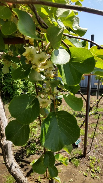 キウイフルーツは、果樹の一種である。 ||| 画像出典:いずれも東京都薬用植物園にて筆者撮影 科名:サルナシ科マタタビ属 学名:Actinidia chinensis 原産地:中国 生態:落葉ツル性大木 別名:シナサルナシ、オニマタタビ 中国大陸の南部の原産のつる性の落葉の大木である。雌雄異株で、幹や枝は褐色で、葉は長さ10㎝~15㎝の楕円形である。葉腋に直径3㎝の白い花をつけ、チャノキとよく似た見た目をしており、芳香がある。 花は雌雄の別があり、雄花に多数のおしべがある。果実は長さ5㎝~8㎝の楕円形で、表面には黄色味の茶色の短い毛がある。夏に果実をつけ、秋から冬にかけて熟する。酸味が強いので、2~3週間の追熟期間が必要である。 我が国には昭和三十年代に紹介され、四十年代になって一気に栽培が広まり、今では家庭果樹として人気の樹種となっている。 果肉色はふつう黄緑色だが、ゴールドキウイという品種もある。そちらは果肉が黄色で、果実の表面はあまり毛がなく、先端がレモンのようにとがるのが特徴。果汁には肉を柔らかくする効果があり、この効果はパイナップルも持っている。 日本語の文献では漢字表記として「猕猴桃」と表記されるが、これは現在はサルナシの漢名として用いられることが多く、「中華猕猴桃」の方がよく用いられている。