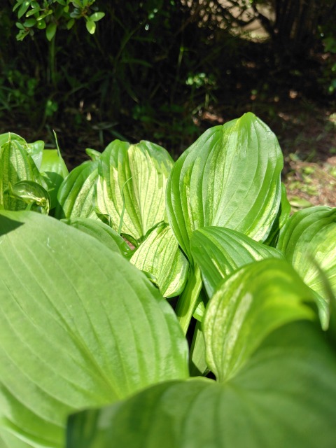 画像出典:小石川植物園にて筆者撮影 ギボウシ類の中では大型類と小型類の中間というべき品種で、古くから園芸品種として栽培されてきており、現在は種小名をカタカナ語読みした「ウンドゥラータ」という名称で流通する。葉の長さは15㎝程度となり、和名の通りに鮮やかな黄緑色地に薄い黄緑色ないしは白の縞模様が入る。6月から7月にかけて花茎を出し、薄紫色の花を咲かせる。