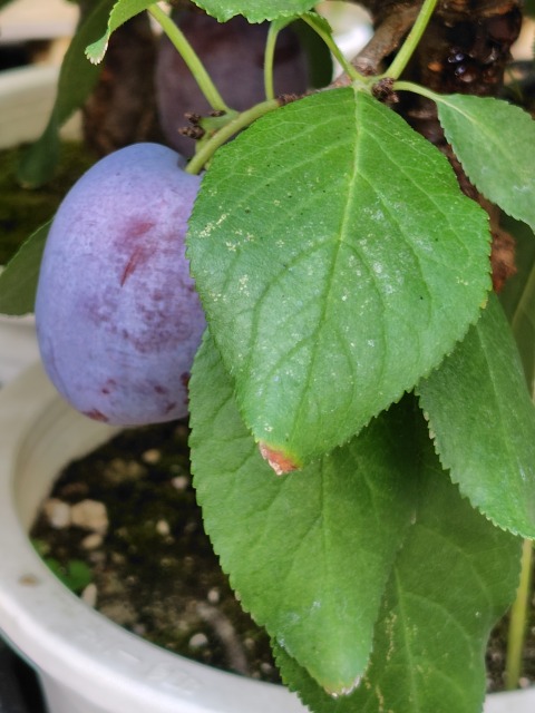 セイヨウスモモとは、果樹の一種である。 画像出典:(上)東京都武蔵野市にて筆者撮影。(下)自宅にて筆者撮影。「シュガープルーン」の系統である。 科名:バラ科スモモ属 学名:Prunus domestica 原産地:ヨーロッパ 生態:落葉香木 スピノサスモモ(Prunus spinosa)とミロバランスモモ(ベニバスモモ、Prunus cerasifera)との雑種系統と考えられる落葉高木で、わが国には明治初期に伝来しており*1、わが国でも「シュガープルーン」の系統が生産される。 樹高は5m~8mほどに達し、早春に白い花を咲かせ、楕円形または球形の果実をつける。果実は甘みと酸味を持ち合わせ、表面に粉を吹く。果実中心部には大きな1つの種子があり、この部分は「核」(Stone)と呼ばれ、モモやスモモの類の特徴である。 果実の色は赤紫色や青紫色、黄色など様々な色合いがあり、熟しても果皮色が黄緑色のままの品種(後述)もある。