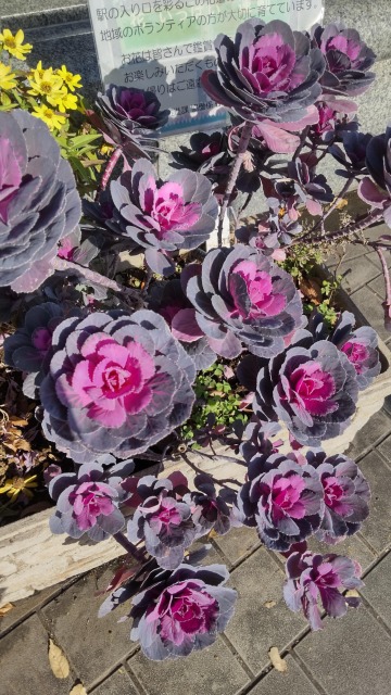 ハボタン(葉牡丹)とは、園芸植物の一種である。 画像出典:写真1枚目は大泉学園駅前の花壇を撮影。「踊りハボタン」状になったもの。写真2枚目と3枚目は自宅近くの植え込みを撮影。 科名:アブラナ科アブラナ属 学名:Brassica oleracea var. acephala 原産地:ヨーロッパ 生態:多年草 ヨーロッパが原産のヤセイカンランを原種とする植物で、わが国には江戸時代中期に食用のキャベツより先に渡来しており、現在は園芸植物として人気を博している植物である。名前の由来は、同心円状に集積した葉をボタンの花に見立てたことから。 冒頭で「多年草」と記したが、普通は秋から冬にかけて栽培し、春に董立ちして花を咲かせて種子をつけてからは刈り取ってしまうため、一年草の扱いを受けている。ただし、うまく冬越しさせて多年草として育てれば、茎が木のように硬化して枝分かれし、その枝先にまた同心円状に集積した葉をつける「踊り葉牡丹」となる。 大別すると丸い葉の「東京系」、縮緬状の葉の「名古屋系」、切れ込みの深い葉の「珊瑚葉系」がある。画像1枚目は「東京系」、画像2枚目は「名古屋系」、画像3枚目は「珊瑚葉系」である。葉の色は濃い緑色や赤紫色、クリーム色や白色など多彩である。 一応キャベツの仲間なので食用にすることはできるが、あくまでも観賞用にすることを目的としているので食感は固く、苦味もあって味も落ちる。また市販品のものは花卉用の農薬が使われていることがあるので、あまりお勧めできない。どうしても食用にしてみたければ、ご自身で種子や苗を買って栽培することをお勧めする。