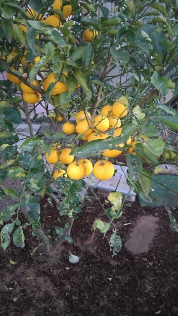 ユズは、柑橘類の一種である。 画像出典:自宅近くの園芸店にて撮影 科名:ミカン科ミカン属 学名:Citrus junos 原産地:中国 生態:常緑低木 中国揚子江原産の常緑低木で、わが国には大和朝廷時代に渡来している。樹高は4m~6mほどで、春に紫色を帯びた白色の星型の花を咲かせる。果実は直径7㎝程度のやや扁平な球形で、表面はやや凹凸がみられる。果実は当初は緑色で、大きくなるにつれ鮮やかな黄色に変色する。未熟果、いわゆる「青ユズ」は、果皮をすりおろしたものや果汁を焼き魚の風味づけに用いるほか、熟したもの、いわゆる「黄ユズ」は熟しても酸味が強いので、生食はされず薬味として、また福島県の郷土菓子であるゆべしやジュース・酒類の風味づけ、七味唐辛子や五香粉の材料として使われる。また、和食の盛り付けとして、果実のうち果肉の部分をくりぬいて器状にする「柚子釜」にすると見た目がよい。近年は果実が一回り大きく、香りや質の良い「木頭ユズ」という品種が人気である。 画像出典:筆者撮影。木頭ユズの写真である。 現在でも続く風習として、冬至の日の夜にユズの果実を湯船に浮かべ、入浴する「ユズ湯」というものがある。これは、体の血行を良くし、風邪をひきにくくする効果があるといわれている。 なお、果実が小型でユズに似た樹形や果実が特徴のハナユという樹木があり、わが国の園芸店ではこのハナユをユズの一種としてみることがあるが、実際はそれぞれ別種である。 なお、中国で「柚」はザボンを意味する。