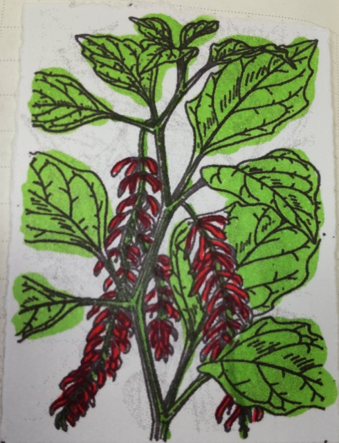 ヨウラクホオズキとは、園芸植物の一種である。 画像出典:筆者が「牧野日本植物図鑑」(1940年)の図版に色ペンで着色したものを撮影