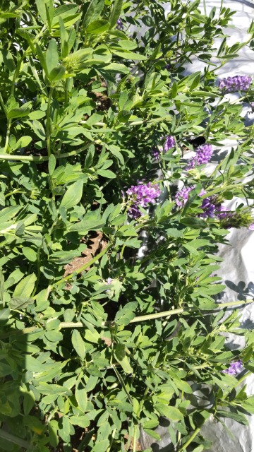 アルファルファとは、牧草並びに野菜の一種である。植物学上は「ムラサキウマゴヤシ」の名称で知られる。 画像出典:東京都薬用植物園にて筆者撮影 科名:マメ科ウマゴヤシ属 学名:Medicago sativa L. 原産地:地中海沿岸 生態:多年草 地中海沿岸地方が原産の多年草で、わが国には明治初期に渡来し、現在は帰化植物として知られる。普通牧草や標本用として栽培され、また各地の道端に野生化している。 草姿は全体的に毛はなく、茎は直立して枝分かれし、中空である。普通草丈は30㎝から90cmで、晩春から初秋に紫色の花を総状花序にかたまって咲かせるが、園芸植物としては流通を見ていない。花の後にはぐるりと巻いたようならせん状の莢の豆果をつけ、莢の中には4個ないしは9個の種実がある。 牧草以外にも、現在は発芽させて日光に当てた「もやし」を野菜として食用にする。
