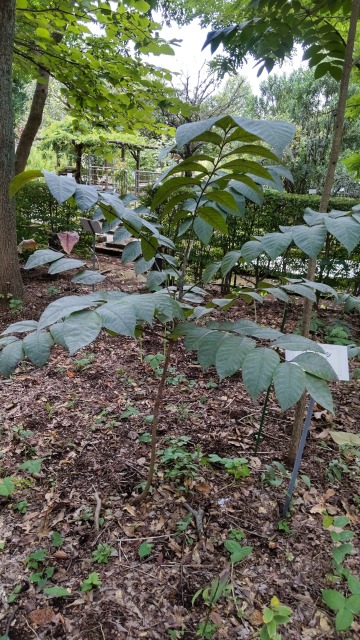 ウルシは、有用樹の一種である。 画像出典:東京都薬用植物園にて筆者撮影 科名:ウルシ科ウルシ属 学名:Toxicodendron vernicifluum 原産地:中国、インド、日本(?) 生態:落葉高木