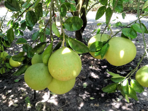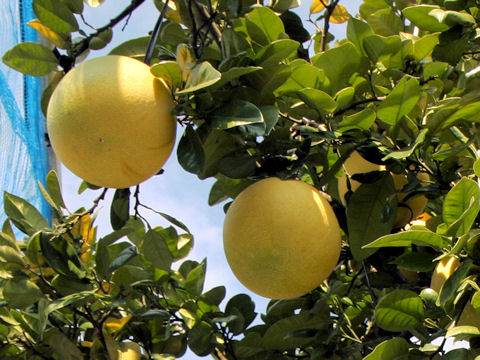 画像出典:https://www.botanic.jp/plants-ha/banpei.htm ザボンの中でも果実が最大の品種で、直径は20㎝で、果実の重さは2㎏内外である。わが国には大正時代末期に植物学者・島田弥市がベトナムのサイゴン市から持ち込んだのが始まりだが、栽培方法が確立されたのは1930年代である。現在は熊本県八代市のブランド品となっている。利用方法はザボンに同じ。