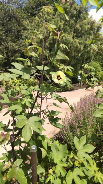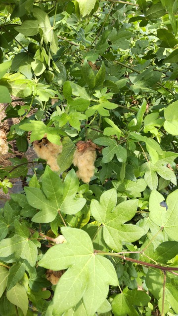 画像出典:東京都薬用植物園にて筆者撮影 現在栽培されるワタ属の植物のうち、最も生産量の多い(総生産量のうち70%を占める)品種である。草丈は1mから2m程度になり、葉は長い葉柄があって、掌状に5つに裂ける。夏から秋に、オクラの花を小さくしたような薄い黄色の花を咲かせ、秋に卵型の蒴果をつける。蒴果は熟すとはぜて白い綿毛を露出する。 利用法はワタに同じ。