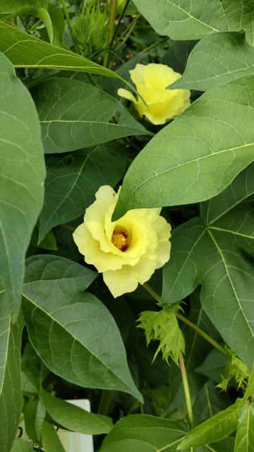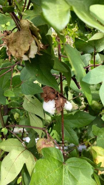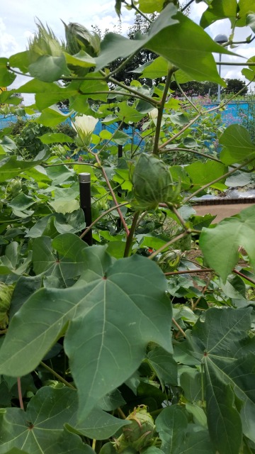 画像出典:いずれも東京都薬用植物園にて撮影 科名:アオイ科ワタ属 学名:Gossypium arboreum var. indicum 原産地:インド 生態:1年草 インドや中南米が原産の一年草で、わが国には平安時代に渡来して以来、各地の種が渡来し、有用植物として栽培される。 原産地のインドや熱帯地域では多年草となるが、耐寒性がないので、わが国では一年草の扱いとなる。夏の盛りから秋にかけて、葉腋に柄のある淡い黄色の花を咲かせる。 花は薄地色の5枚の花弁がらせん状に重なり、基部は小豆色をしている。秋に蒴果をつけるが、熟すとはぜて綿毛を露出する。綿毛はいわゆる「コットンボール」で、詰め綿や脱脂綿、布団綿、ぬいぐるみなどに利用する。また、はぜた蒴果は見た目が面白いので、秋のフラワーアレンジメントや生け花の素材にも用いられる。この蒴果を観賞用にするため、「コットン」名義で家庭で栽培されることもある。 また、種子からは油(綿実油)がとれ、主に食用に用いられる。