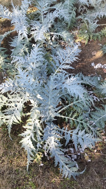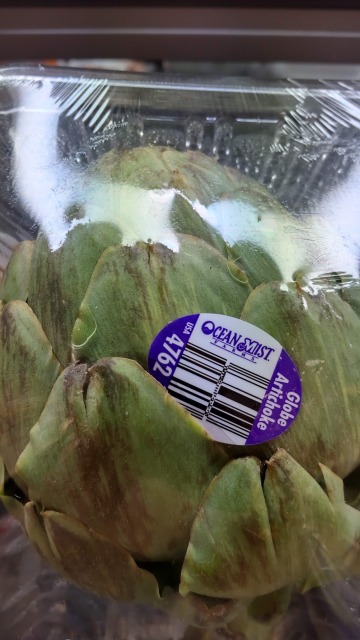 画像出典:(左)夢の島熱帯植物館にて撮影/(右)新宿高島屋にて撮影 科名:キク科カルドン属 学名:Cynara scolymus 原産地:地中海近辺 生態:多年草 別名:チョウセンアザミ 地中海近辺が原産の多年草である。現在はフランスやイタリア、スペインなどでは人気のある食材となっている。わが国への渡来時期は意外と古く、江戸時代に渡来しており、「本草図譜」に図がみられる。しかし、当時は巨大なアザミ状の花を観賞するのみで、現在に至っても後述する調理の難しさから、まれに百貨店で出回る程度で、普段使いの野菜としては流通していない。 チョウセンアザミという和名があるが、本種は朝鮮半島とは何の関係もなく、単なる「外来のアザミ」という意味である。 草丈は1mから2m近くになり、葉は鮮やかな濃い緑色で、羽状に深く切れ込み、トゲが生えている。葉の若いもの(画像左)は、葉の表面に白い細かな短い毛が生えているため、銀色にも見える色合いとなっている。晩春から夏に大きな頭状花序を出し、鮮やかな紫色の筒状花を咲かせる。 晩春に収穫したつぼみを野菜として利用するのである。葉のように見える肉厚の萼の下部と、萼に包まれた花芯の部分を食べる。これらの食用になる部分は豊富にでんぷんが含まれており、茹でるとイモ類や百合根に似たほくほくした食感とソラマメのような甘味を味わうことができる。前者はつぼみをゆで、蕚部分を解体してから蕚の下部を歯で扱き出すよウにして食する。また、花の芯の部分は「アーティチョークハート」と呼ばれ、蕚の下部の部分よりも癖がなく食べやすくなっているが、この部分が蕾全体の大きさに対して小さいこともある。 しかし、この野菜は蕾全体に対して可食部分が多くないことから歩留まりは良いとは言えず、しかも蕾がトゲだらけで硬いため、切り分けるのにすら一苦労である(カボチャを包丁で切るのと同じくらいの強度が要る)ことから、あまり野菜としては普及をみておらず、観賞用にされることのほうが多い。前述のように百貨店に出回ることもあるが、それなりに根が張るため、ホイホイ買える代物でもない。そもそも、わが国と原産地ではアーティチョークの生育環境や生育状況、ひいては風味がだいぶ変わってくるという結果が出ている。このことも、アーティチョークがわが国であまり普及していない理由であると考えられる。