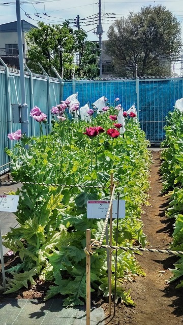 ケシは、有用植物の一種である。 画像出典:上下いずれも東京都薬用植物園にて筆者撮影。ケシ・アサの圃場の管理人に問い合わせて許可をもらい、フェンス越しに撮影。 科名:ケシ科ケシ属 学名:Papaver somniferum 原産地:地中海から小アジアにかけて 生態:二年草 地中海沿岸から小アジアが原産の二年草で、わが国には室町時代に渡来し、薬草として栽培されてきた。茎は直立し、草丈は1m~2mになる。葉は灰緑色の長楕円形から長卵形で互生し、縁には不規則な鋸歯があり波打つ。葉の根元は茎を抱くような形になっている。4月から5月にかけて4枚の花弁からなる花を咲かせ、花の色は赤色や白色、マゼンタピンクや薄桃色、紫色など多彩である。写真下の品種は、英国で園芸用に品種改良されたもので、「ポンポン咲き」の品種である。 花が終わると、芥子坊主と呼ばれる独特の形状の果実をつけ、種子は細かな粒状である。 若い果実を傷つけ、そこから出た乳液を乾燥させ、粉末状にしたのが「阿片」である。この阿片は、適切な量を守ればモルヒネとして鎮痛薬・陳製薬として利用できたのだが、これには習慣性があり、しばしばひどい薬物中毒を引き起こした。中国史に今もなお暗い影を落とすアヘン戦争は、阿片が起こした害悪の中で最もたるものといえるだろう。 現在は、それから精製されるモルヒネや、モルヒネを化学的に変化させたヘロインとともに麻薬に指定され、これらの麻薬としての使用や無免許での所持、またケシの植物体の無免許での栽培・医療目的以外での所持が違法となっている。 種子、いわゆる「芥子粒」は麻薬成分を全く含まず、食用として用いられる。七味唐辛子に混ぜられていることもあり、あんパンの上に乗っている粒状のものもケシの種子である。しかし、前述のようにわが国では医療目的以外での栽培が不可能であるため、現在は100%が輸入品である。食用以外にも、種子からは油がとれるので、油絵用絵の具の油としても用いる。 かつては、若い葉を野菜として食用にすることもあったという。野菜が満足に育たない場合の最終手段であった。