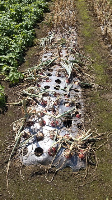 タマネギは、野菜として栽培される植物の一種。 画像出典:https://commons.wikimedia.org/wiki/File:Illustration_Allium_schoenoprasum_and_Allium_cepa0_clean.jpg?uselang=ja 画像出典:赤タマネギ。自宅近くの畑にて撮影。 科名:ネギ科ネギ属 学名:Allium cepa 原産地:中央アジア 生態:多年草 中央アジアが原産の多年草で、わが国には江戸時代に長崎の出島に持ち込まれ、出島在住のオランダ人が小規模の栽培を実施した記録があるが、そのころにはあまり普及せず、日本全土に栽培が広まるのは明治中期以降のことである。そのころは一時的にコレラが大流行し、根拠や因果関係は不明ながらも「タマネギがコレラに効果がある」という風聞が広まり、タマネギの普及に一役買ったのである。 茎は円筒形で直立し、高さは50cmくらいまで生長して、下部に2枚から3枚のネギに似た円柱形の葉をつける。秋には、茎の頂部に花序が大きな球形となってつき、白色の花が密集する。春から鱗茎部が成長をはじめ、夏に収穫される。鱗茎は葉を切り取って冷暗所に保存すれば長持ちする。 食用となる鱗茎の部分は直径10㎝に成長し、球形或いは楕円形で、特有の刺激臭や辛みがある。加熱すると辛みは消え、甘みが出てくる。黄タマネギや白タマネギ、赤タマネギなどの品種があり、黄タマネギはカレーや煮込み、炒め物、揚げ物、ハンバーグなどの加熱料理に、白タマネギや赤タマネギはスライスしてから水にさらし、サンドイッチやサラダの具材に向く。密接に苗を植えて、鱗茎の部分が小さくなるように栽培した「ペコロス」は皮をむいて丸ごと煮るのに向く。