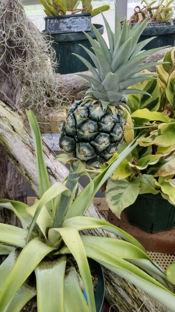 南米が原産の多年草で、わが国には江戸後期に紹介されたが、本格的な栽培が始まったのは大正以降である。当初は果実がよく似た見た目をしているタコノキ科のアダンとしばしば混同され、当時の本草書にはしばしばアダンにパイナップルの中国名である「鳳梨」を当てていることがある。 コメント