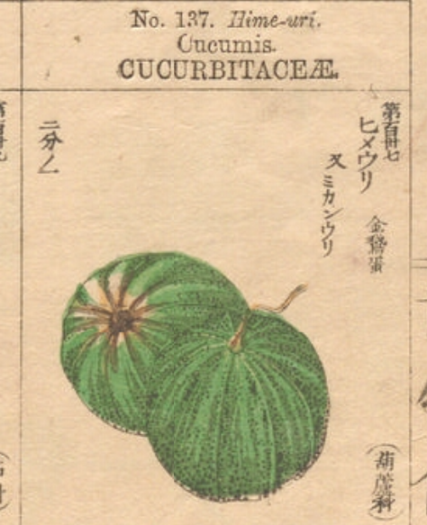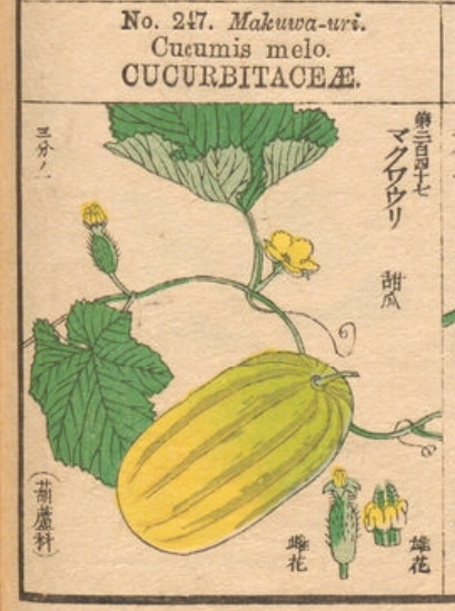 マクワウリとは、果実を食用とする植物の一種である。 画像出典:有用植物図説(東京大学総合図書館所蔵)