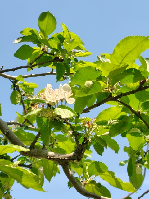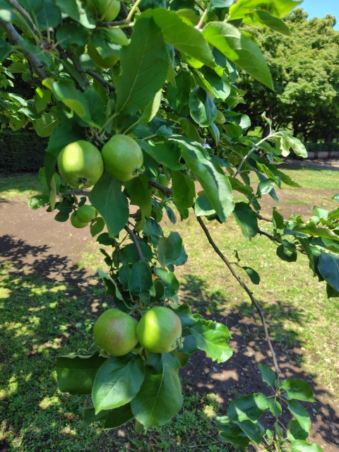 リンゴ(セイヨウリンゴ)は、果樹の一種である。 画像出典:(上)(中1)(中2)花と果実。小石川植物園にて写真撮影。「ニュートンのリンゴ」という品種である。(下)https://commons.wikimedia.org/wiki/File:Red_apple_with_leaf.jpg?uselang=ja 赤リンゴの果実。著作者:Paolo Neo(Public domain) 科名:バラ科リンゴ属 学名:Malus domestica 原産地:小アジア・コーカサス地方 生態:落葉小高木 小アジアやコーサカス地方が原産であるとされる落葉高木。わが国には幕末期に導入され、明治時代にあまねく栽培されるようになった。まだワリンゴが主流であった当時はオオリンゴ(大林檎)と呼称された。 我が国の最初の記録は、越前藩主・松平春嶽が自邸に苗木を植え、果実を収穫し、果実をジャムにして餅に塗って食したという記録が残っている。 樹高は8m内外で、春に白色ないしは薄紅色の花を咲かせる。果実は直径約3~15 cm 、重さ約35~1000g。外皮の色は赤や黄緑,または黄色をしている。「ふじ」や「王林」「ゴールデンデリシャス」「アルプス乙女」「トキ」など多くの品種がある。主に果実を生食するほか、ジュースやジャム、菓子に加工する。 果実は熟すと「蜜入り」となり、この状態が最も味が良いとされる。なお、旧約聖書『創世記』に登場するアダムとエバが蛇にそそのかされて食したことで知られる「禁断の果実」は本種ではないかという説が根強かったが、近年はブドウやイチジク、コムギなど諸説ある。 なお、前近代まで栽培されていたワリンゴ(M.pumila)は平安時代に渡来し、当時は花を観賞用とするのみであったが、鎌倉時代から果実をドライフルーツや生食など、食用に供されるようになった。樹高はセイヨウリンゴとほぼ変わらないが、病気に弱いという特性や、果実が小さいなどの特徴もあり、明治以降は栽培がすたれ、戦後には絶滅寸前にまで追い込まれたが、現在はその特性が認められ、東北・甲信越地方で細々と栽培されている。