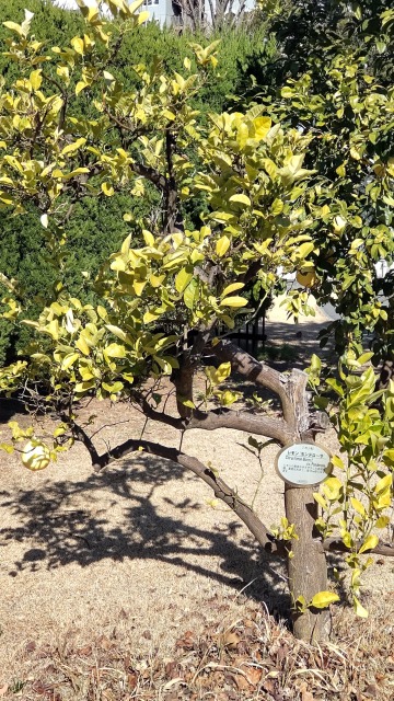画像出典:新宿御苑にて筆者撮影 学名:Citrus limon cv. Ponderosa レモンの栽培品種で、直径15㎝程の巨大な果実をつけることで知られる。一年中、特に春に5枚の花弁からなる白い花を咲かせる。果実は釣り鐘型で、果汁を料理に用いるほか、丸のままの果実を観賞用にする。