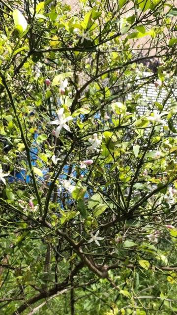 画像出典:新宿御苑にて筆者撮影 学名:Citrus limon cv. Ponderosa レモンの栽培品種で、直径15㎝程の巨大な果実をつけることで知られる。一年中、特に春に5枚の花弁からなる白い花を咲かせる。果実は釣り鐘型で、果汁を料理に用いるほか、丸のままの果実を観賞用にする。